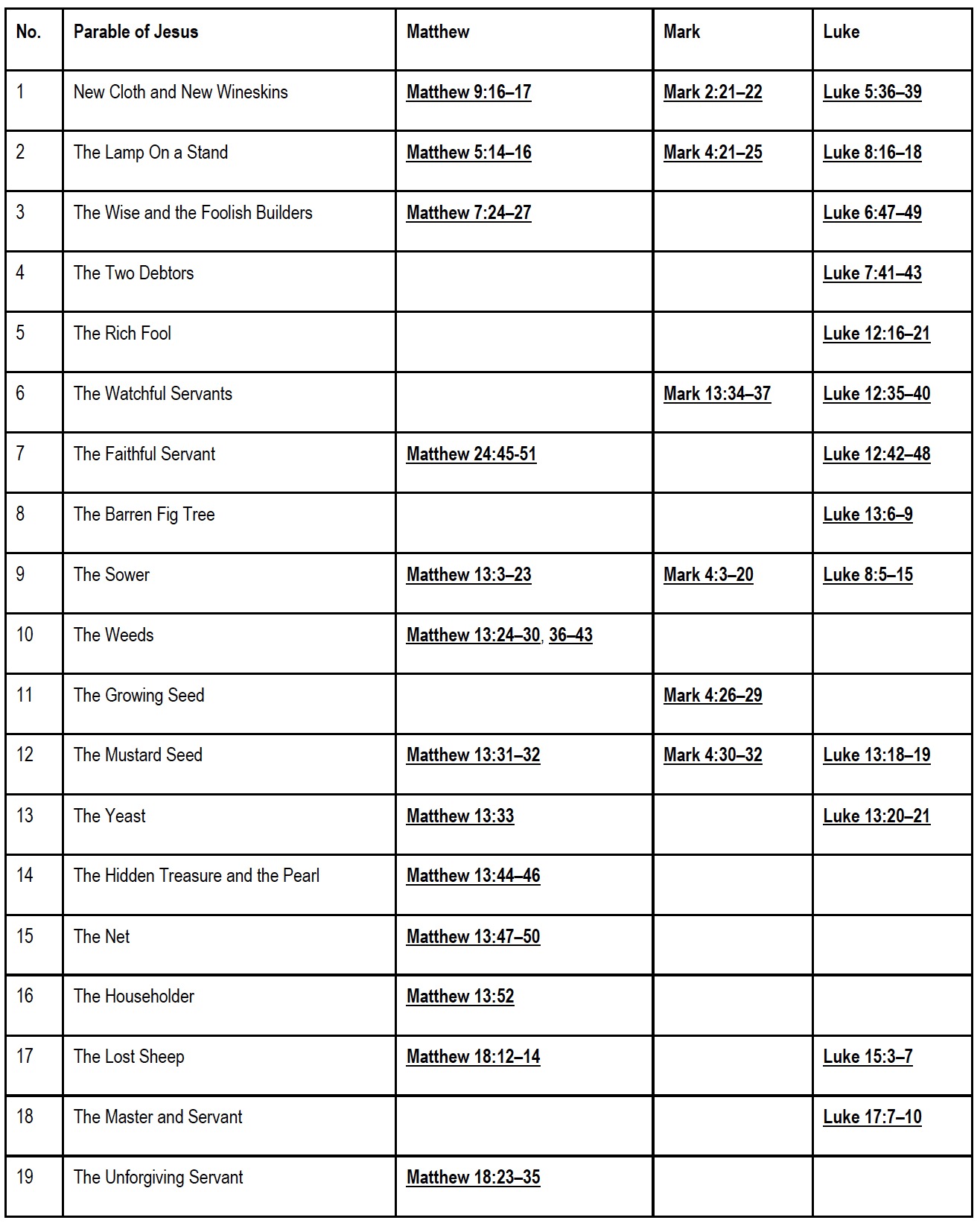 It has been estimated that at least one-third of Jesus’ recorded teaching is found in the parables. (Please see my chart on Parables of Jesus)